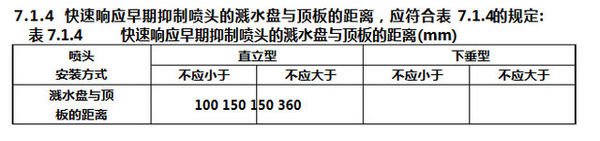 此外,除吊頂型噴頭及吊頂下安裝的噴頭外,直立型、下垂型標準噴頭,其濺水盤與頂板的距離,不應小于75mm,且不應大于150mm。