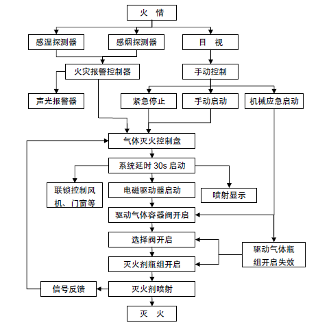 圖1 七氟丙烷滅火系統(tǒng)工作流程圖