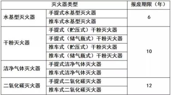 4.3 滅火器出廠時間達到或超過下表規定的報廢期限時應報廢。